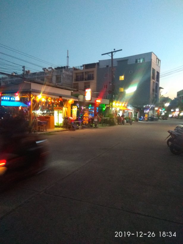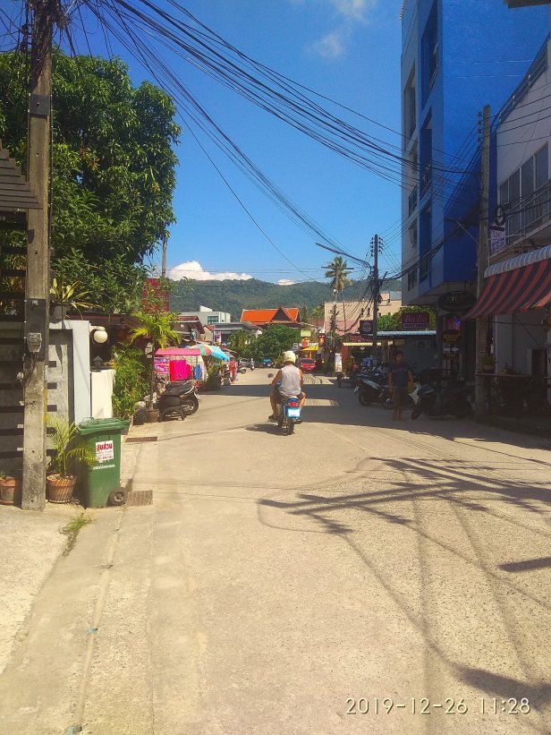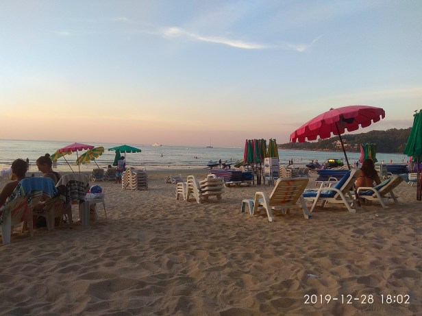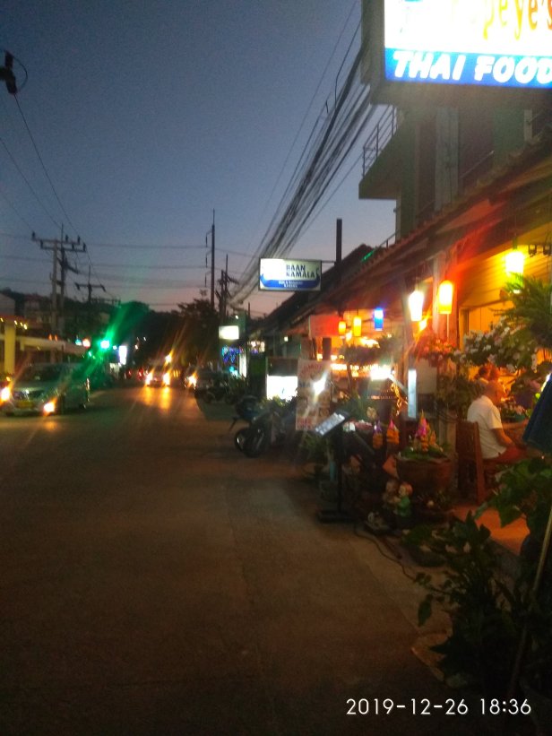 Kiedy natomiast idę na plażę spacerem, codziennie obserwuję przemianę ulic – zupełnie inne małe jadłodajnie otwarte są rano a zupełnie inne wieczorem. I jak się okazuje, jest także na Kamali mała uliczka rozrywkowa, senna i cicha przed południem i kolorowa, pełna gwaru i muzyki wieczorem. W niewielkich barach siedzą młode Tajki w oczekiwaniu na gości.