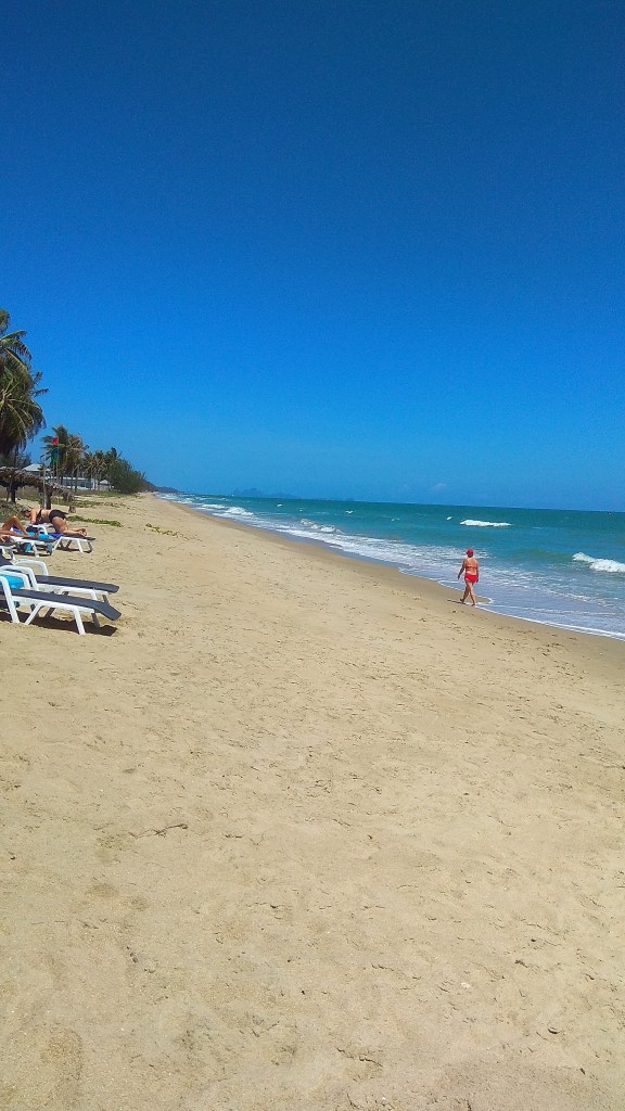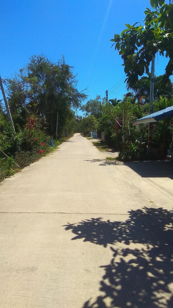 Po odespaniu nocnych przygód idziemy na plażę. Świat za bramą osiedla zaczyna przypominać Tajlandię. Droga do morza zajmuje ok 12 minut i jest już bardziej wiejską drogę niż ścieżką osiedlową. Nareszcie jest ładnie.