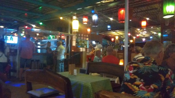 Wieczorem zostaję przeciągnięta przez trzy knajpy i zaczynam mieć poważne wątpliwości, czy to miejsce faktycznie jest dla mnie. I to z kilku względów. Cała ta miejscowość położona jest na bardzo dużym terenie, co oznacza, że cała niezbędna infrastruktura w postaci sklepów czy knajpek jest dosyć daleko. Tak naprawdę najbliżej jest do plaży, ale nawet do niej nikt nie używa nóg. Wszyscy mają skutery albo tzw sarengi, czyli połączenie skutera z bocznym siedziskiem dla innych osób. Są to takie samoróbki produkowane chałupniczym sposobem. Bez jakiegokolwiek środka lokomocji, poruszanie się po tym terenie, zwłaszcza w upały, jest trochę utrudnione. Wieczorami natomiast na drogi wychodzą tajskie psy a na poboczach łatwo się można natknąć na węża. Jednym słowem, spacery zarówno dniem jak i nocą nie są wskazane. Albo upał albo zwierzątka. A ja tutaj nie prowadzę żadnego pojazdu.