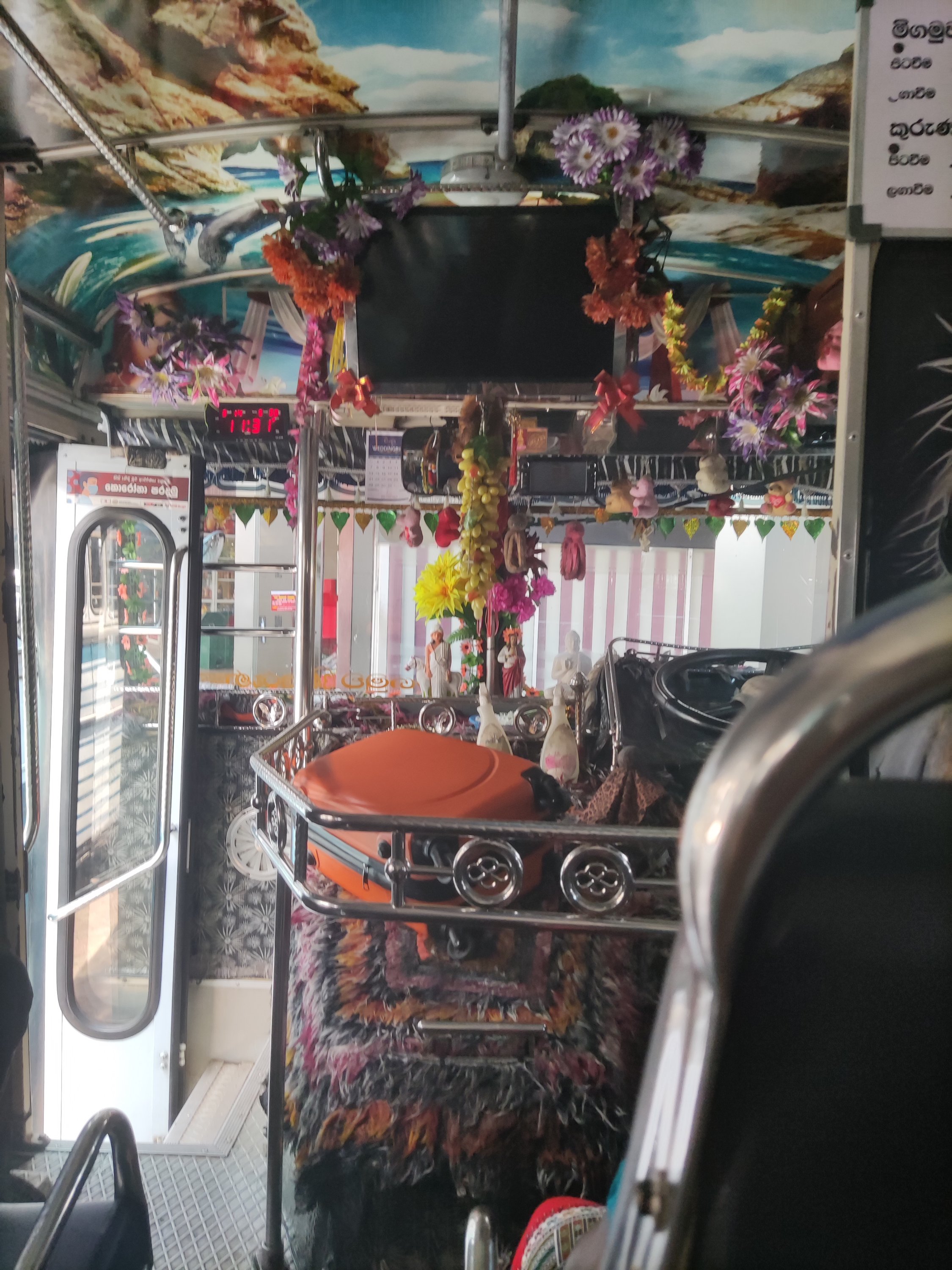 W końcu dotarliśmy do Kurunegala i zostałam biegusiem przegnana do stojącego już autobusu do Dambulla. O ile pierwszy kierowca, zatrzymując się co parę minut nie osiągał specjalnej prędkości, o tyle następny pokonywał trasę do Dambulla z prędkością światła. Wyprzedzał prawie na trzeciego wszystkie wielkie ciężarówki, wszystkie samochody osobowe i inne autobusy w rytm puszczanej sobie i oczywiście nam muzyki. Hamowania były gwałtowne i w ostatnim momencie. Tym razem nie tylko żołądek ale i serce miałam w gardle. Jakimś cudem dotarliśmy do Dambulla.