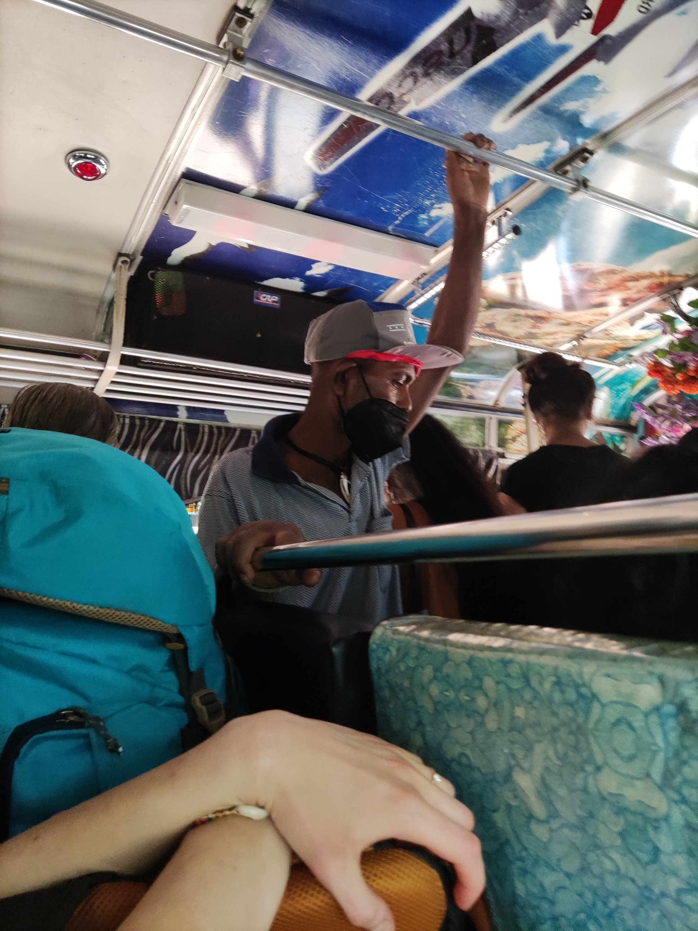 Wsiadając na dworcu w Negombo miałam oczywiście miejsce siedzące, czego nie można powiedzieć o wielu innych lokalnych pasażerach, którzy dosiadając się na trasie przejazdu, niestety mieli miejsca jedynie stojące. Trzeba powiedzieć, że na niektórych odcinkach tłok był niemiłosierny. Zadowolona byłam z miejsca przy oknie, bo nikt na mnie nie leżał, nie walił mnie bagażami po głowie lub wręcz zrzucał swój bagaż na kolana osób siedzących po stronie zewnętrznej. Pomimo, że pierwszy odcinek wynosił ok. 72 km i samochodem można by go przejechać w niecałe dwie godziny, autobus pokonuje tę trasę prawie w 3,5. Nic dziwnego, zatrzymuje się nie tylko w mijanych miasteczkach ale i na trasie praktycznie co 2-3 minuty. Tutaj najwyraźniej wystarczy wyjść przed własny dom i machnąć na autobus, albo poprosić kierowcę o wysadzenie przy najbliższym polu kukurydzy. Od ciągłego zatrzymywania się i ruszania zrobiło mi się całkiem niedobrze, tym bardziej, że dodatkową atrakcją był smród oleju wpadający przez otwarte okna. Przeciągi dopełniały tę pełnię szczęścia.