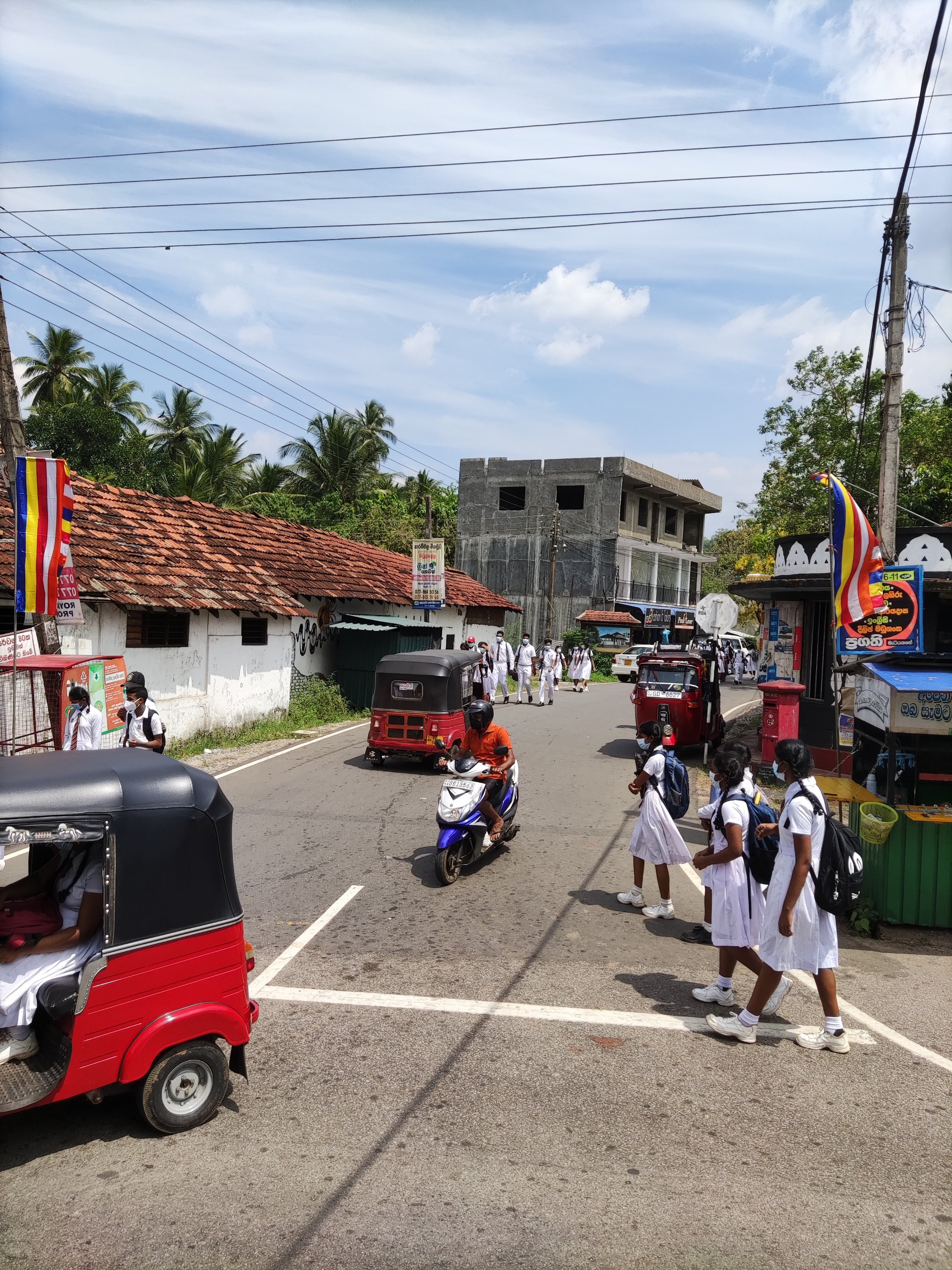 Wyjazd z Negombo zaczął się raczej niefortunnie. Na planowany autobus czekałam ponad półtorej godziny pomimo, że jeżdżą podobno co 15 minut. Sir Lanka boryka się obecnie z ogromnym kryzysem paliwowym, dotyczącym zwłaszcza oleju napędowego. Stacje paliwowe obstawione są grzecznie ustawianymi w rządku dziesiątkami kanistrów, a samochody stoją w nieprawdopodobnie długich kolejkach. Dotknęło to wszelkie pojazdy typu diesel, w tym także oczywiście autobusy. Stąd też powstały ogromne opóźnienia w komunikacji publicznej. W końcu podstawiono jakiś autobus i przegnano mnie do niego na inne stanowisko. Wcześniej do wyboru miał być autobus z normalną klimatyzacją lub ten klimatyzowany przeciągami z pootwieranych okien i drzwi. No niestety okazało się, że wyboru nie ma i należało się jedynie cieszyć, że w końcu jakoś wyruszę. Pierwszy odcinek trasy to prawie 3 godziny do Kurunegala, stamtąd drugim autobusem do Dambulla, a z Dambulla do Sigiriya albo trzecim autobusem albo już tuk-tukiem.