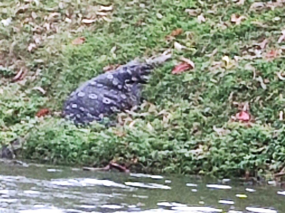 Żeby odetchnąć od hałasu i tłumów, zakończyłam dzień krótką wycieczką wynajętą łodzią po faktycznie bardzo ładnym jeziorze. I tu przynajmniej miałam szczęście zobaczyć zwierzę, które oni ciągle nazywają jaszczurką, a ja bym już raczej powiedziała, że to jakiś rodzaj warana. No i oczywiście znowu wiszące na drzewach nietoperze. Do hotelu wróciłam zmęczona całodzienną wędrówką, ale za to w pełni usatysfakcjonowana.