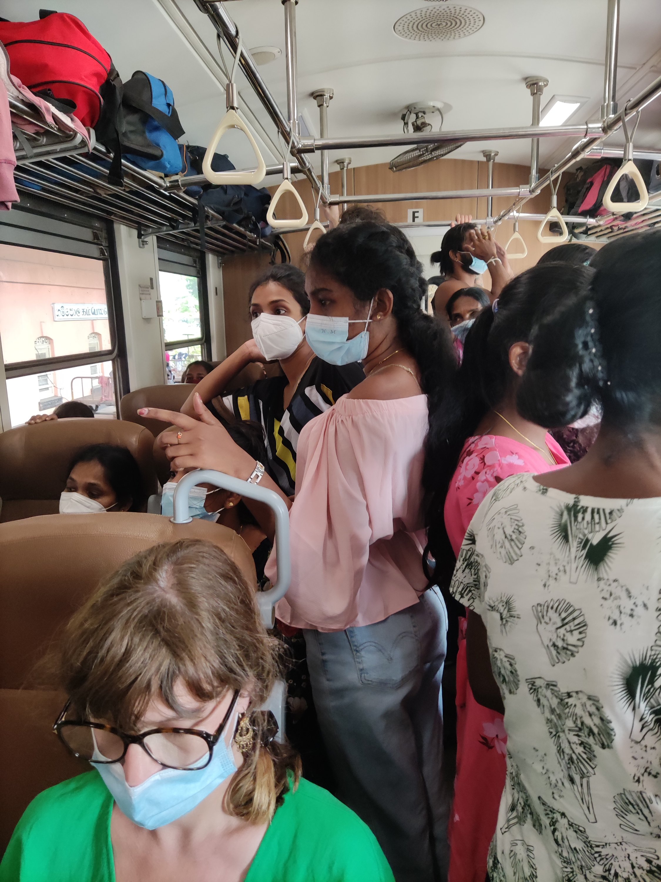 Dworzec nie był zbytnio przepełniony więc zrodziła się nadzieja, że może jednak uda się jakoś tę podróż pokonać w miarę normalnych warunkach. Kiedy nadjechał pociąg z Kolombo, okazało się, że te nadzieje były całkiem płonne. W pociągu było czarno i gęsto od pasażerów. Dobrze, że udało mi się do niego wsiąść. Ponad 3 godziny stałam w przedziale, czując jak kręgosłup powoli mi zaczyna pękać, a nogi lekko odmawiają posłuszeństwa. Jednocześnie, podziwiałam się w głębi duszy za swoją przezorność i umiejętność planowania podróży. Podróż tym pociągiem zajmuje z Kandy do Ella ok. 8 godzin. Gdybym od początku nie rozłożyła jej sobie na raty, nie wiem jakim cudem w tych warunkach dałabym radę tę drogę przeżyć. Pociąg był zatłoczony po brzegi, a wbrew czytanym opiniom, Lankijczycy nie są aż tak uprzejmym narodem, żeby ustąpić komuś miejsca. Może, gdzieś później ktoś by wysiadł na trasie, a może musiałabym przestać tę drogę do samego końca. W tym układzie mój pęd do organizowania sobie wszystkiego po swojemu, wbrew cudzym rekomendacjom, okazał się być najlepszym wyjściem z tej sytuacji.