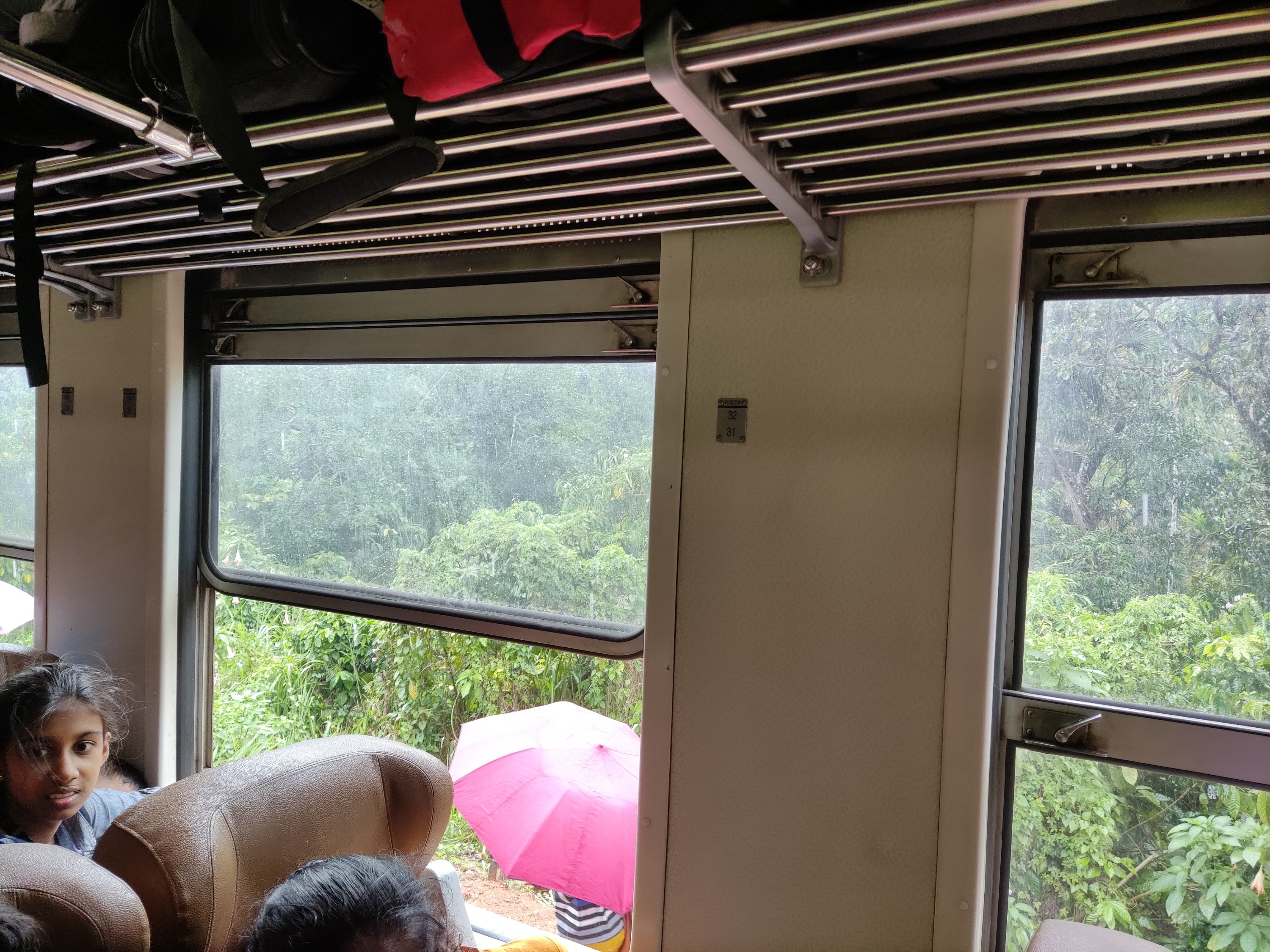Nie wiem jak by to wyglądało z Hatton do Ella, ale z Kandy do Hatton droga jest według mnie bardzo przereklamowana. Pociąg jedzie głównie w wysokich tunelach pokrytych trawami i od czasu do czasu pojawia się jakaś przerwa. Jest ona na tyle krótka, że trudno zrobić nawet jakieś zdjęcie. Poza tym, żeby zrobić jakieś dobre ujęcie, należałoby siedzieć i to najlepiej przy oknie. Na stojąco, w trzęsącym się pociągu, jest to raczej utrudnione.