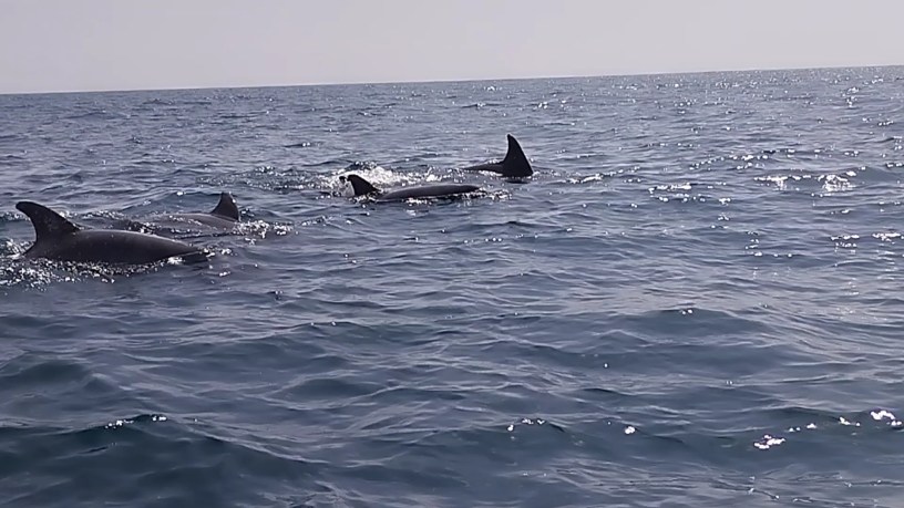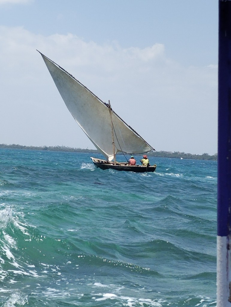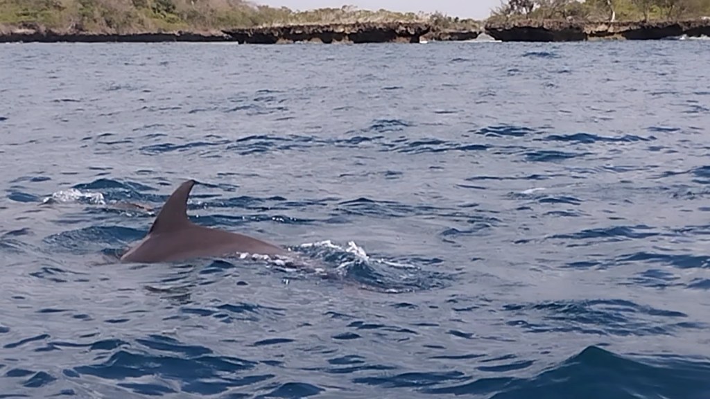 Wyruszamy w ocean. Podobno prawdopodobieństwo spotkania delfinów wynosi jakieś 80%. Tutejszy park jest ich naturalnym środowiskiem, w którym na dodatek czują się bezpiecznie. Tutaj mają swoje żerowiska i przebywają przez większość czasu. Niekiedy znikają w kierunku Tanzanii, od której dzieli nas tylko pewien szmat morskiej toni. Podobno stąd, jakby się uprzeć, można dopłynąć do Południowej Afryki 🙂 Po półgodzinie naszej wodnej wędrówki trafiamy w końcu na wyczekiwane delfiny. Wrażenie jest fantastyczne. Widziałam je już przepływające koło łodzi w Egipcie, ale te są bliziutko, praktycznie na wyciągnięcie dłoni, a tym samym wydają się być większe, niż te egipskie. A może nawet i są – w końcu w Afryce wszystko jest trochę większe 🙂