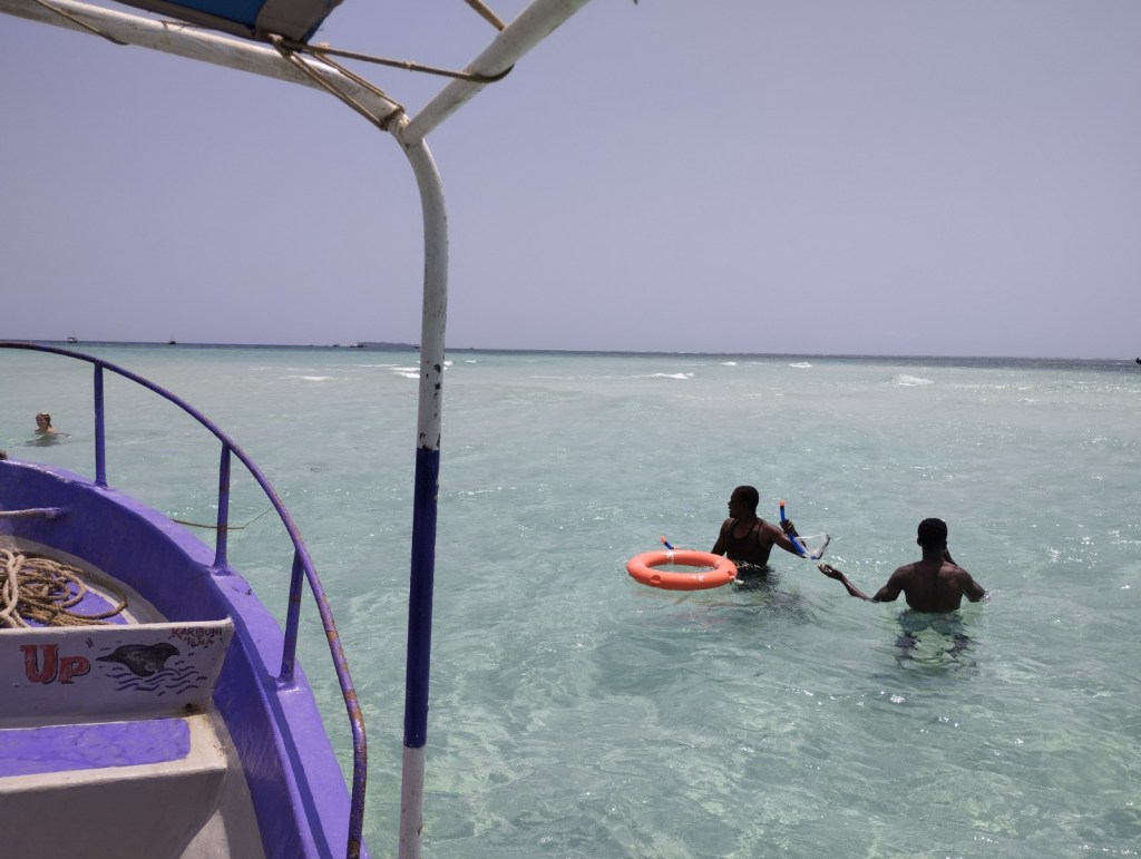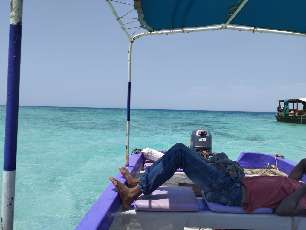 Załoga łodzi składa się z kapitana i jak się okazuje mojej prywatnej ochrony i pomocy w czasie nurkowania 🙂 Obydwaj to młodzi ludzie, którzy mieszkają na zlokalizowanej tu wyspie Wasini, będącej jakby pośrednio częścią parku narodowego. Żyją z wody i obsługi turystów. Jak wielu innych, ledwo kończą szkoły podstawowe w celu zdobycia podstawowej wiedzy, która pozwala im później uzyskać licencję na prowadzenie łodzi i wożenie przyjezdnych. Wygląda na to, że niczego więcej od życia nie potrzebują i że to im do życia całkowicie wystarcza. To jest ich życie i jak sami mówią – ich raj.