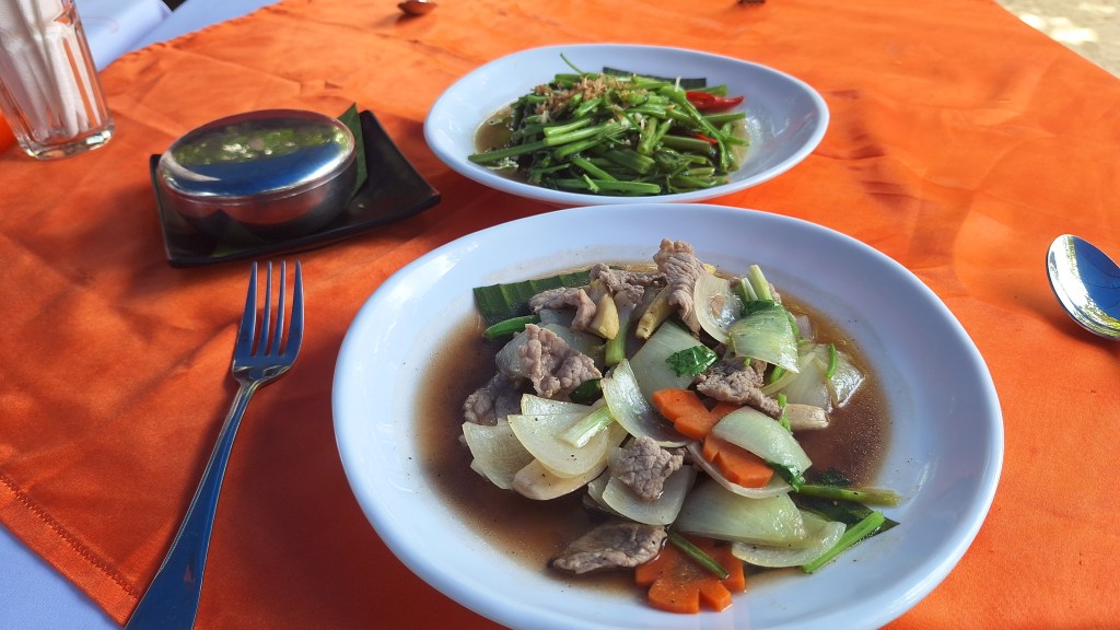 Danie w takiej restauracji, razem z jakimś napojem kosztowało 180 THB.