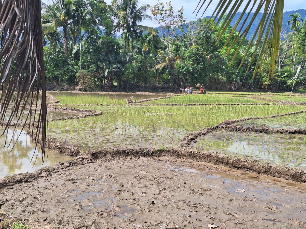 Poniedziałek po wyprawie do dżungli spędzony relaksacyjnie w hotelu. Ciągle bolały mnie mięśnie zwłaszcza nóg, choć i tak było już lepiej, niż poprzedniego dnia. Myślę, że dużo pomógł rewelacyjny masaż, zrobiony zaraz po powrocie. Nie czułam się jednakże na siłach wyruszać jeszcze na dalsze spacery. Uznałam, że organizm wymaga jednak regeneracji po tak dużym wysiłku, jakim był trekking przez dżunglę. Wykorzystałam jednak ten dzień na znalezienie lokalnego przewodnika, który podjął się pokazania mi okolic Bukit Lawang. I tak też się stało. We wtorek rano spotkałam się z nim o 9.30 rano i tak się zaczął następny etap moich przygód. Tomam zabrał mnie na początek tuk-tukiem do pobliskiej wioski, gdzie miałam okazję zobaczyć pola ryżowe i pracujące na nich kobiety, które właśnie sadziły na nich nowe sadzonki ryżu. Ogromnie ciężka praca, zwłaszcza w tym klimacie. Brodzące w wodzie indonezyjki obsadzały żmudnie wydzielone połacie pól ryżowych.