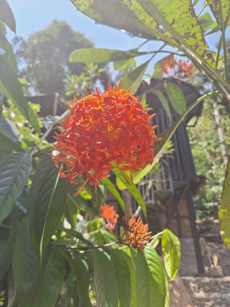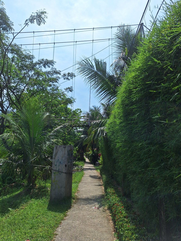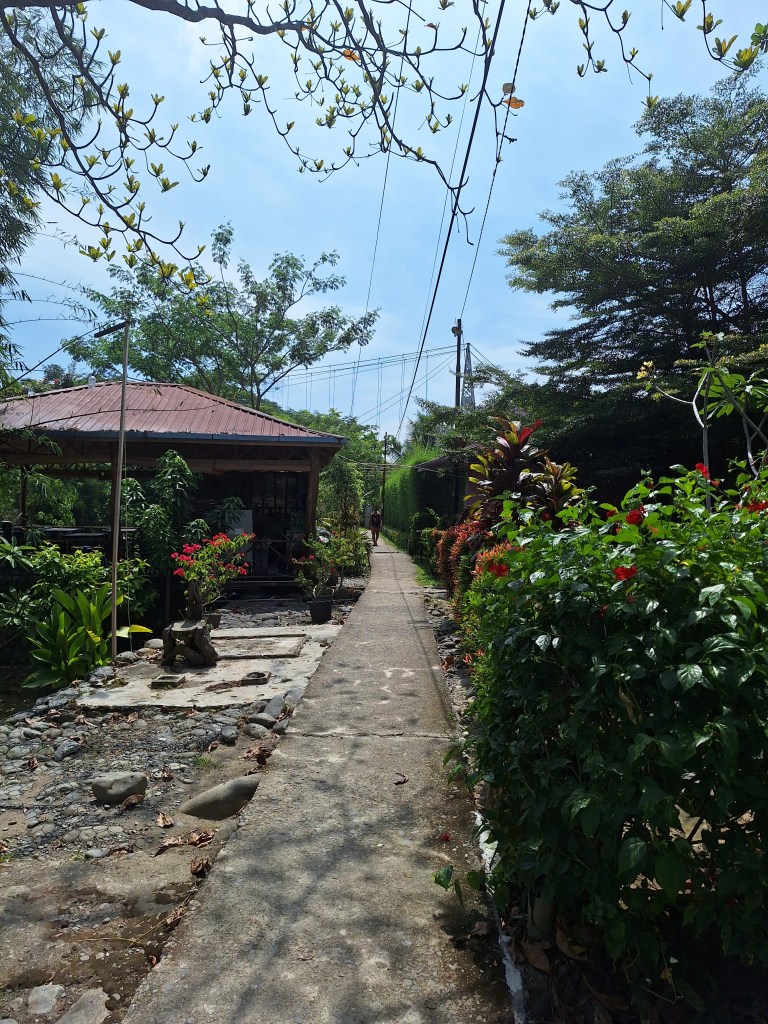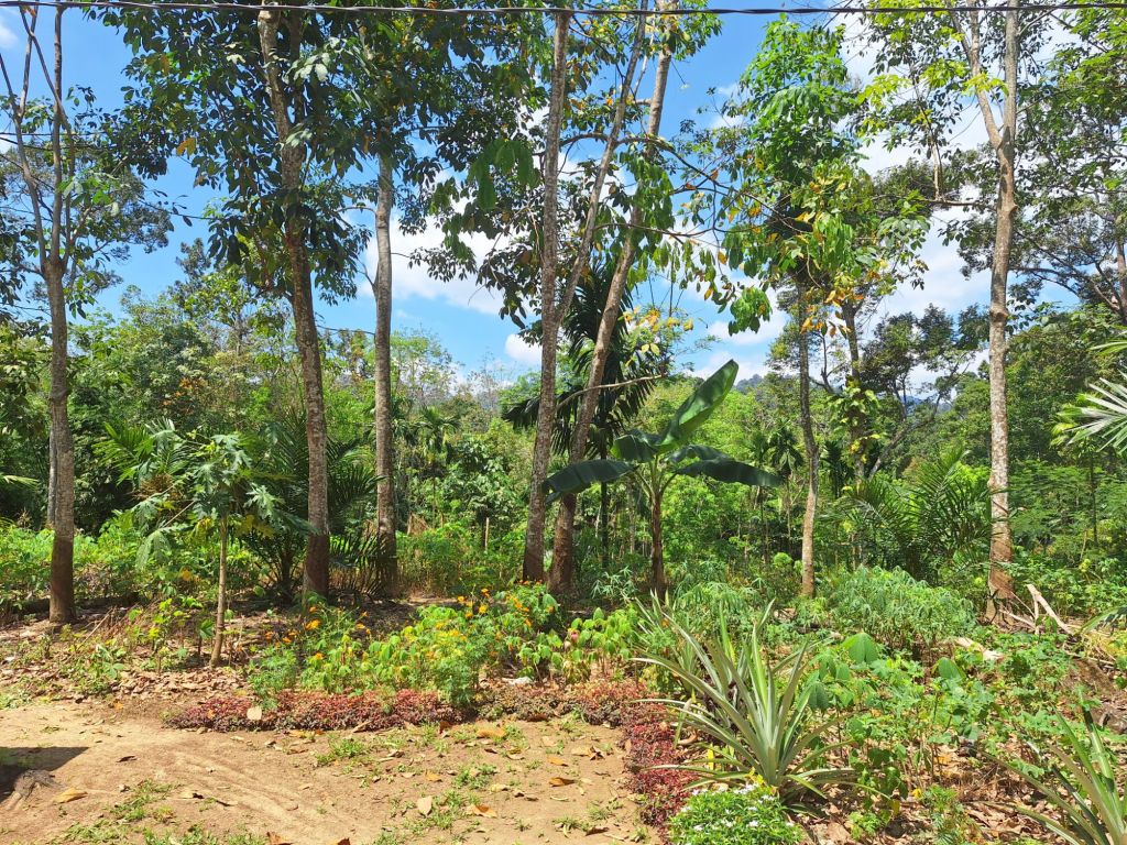 Po zrobieniu drobnych zakupów, zamieniliśmy tuk-tuka na skuter i dopiero wtedy zaczęła się prawdziwa frajda. Bocznymi, szutrowymi drogami zostałam przewieziona w piękne miejsca na skraju dżungli i tym razem czekały mnie jedynie spacery po raczej płaskim terenie. Po drodze odwiedziliśmy uroczy, samotny domek, należący do przyjaciela Tomama, położony na skraju dżungli i otoczony wspaniałą zielenią. Wymarzone miejsce do życia w ciszy i spokoju aczkolwiek nie bez małych konfliktów z podchodzącą pod dom zwierzyną.
