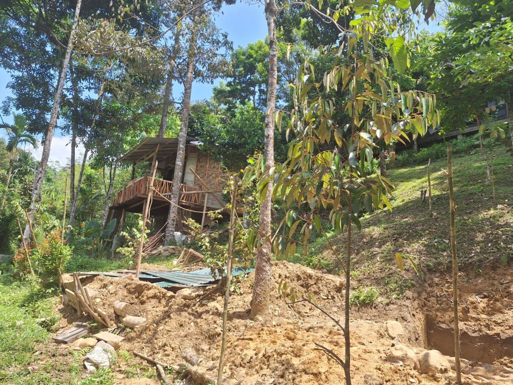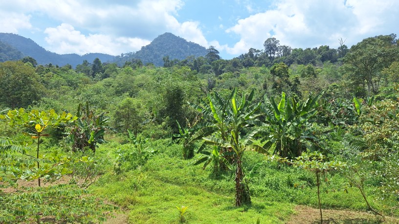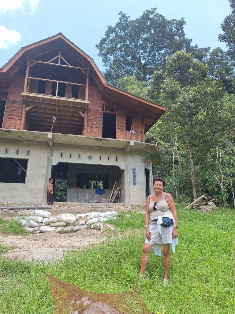 Podczas dłuższego spaceru okolicznymi ścieżkami, natknęliśmy się właśnie na samice orangutana z małym, siedzącą wysoko na drzewie, niedaleko jednego z tamtejszych domostw. Tym samym liczba widzianych przeze mnie orangutanów zwiększyła się do 10 osobników. Mieliśmy ogromne szczęście, że bez wchodzenia w głąb dżungli mogliśmy je przez jakiś czas poobserwować.