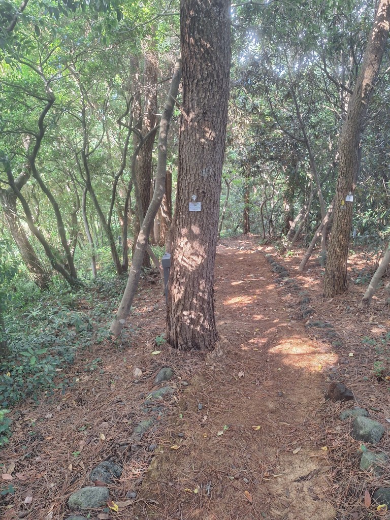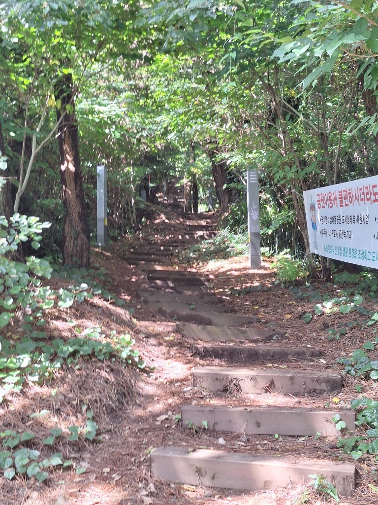 Im dłużej jednak patrzyłam na tę górę i na jej okolice, tym bardziej nasuwało się wyobrażenie z niej widoków na otaczające ją morze i małe, portowe miasto. Mój cierpliwy kierowca, spokojnie czekał na moją decyzję. Trochę uśmiechnięty zachęcał, ale broń boże nie naciskał. On też sobie zdawał sprawę, że już zdążyłam w ciągu dnia kilka km zrobić. W końcu stwierdziłam – idę, najwyżej cofnę się z jakiejś części drogi, jeśli w pewnym momencie uznam, że nie dam rady wejść na sam szczyt. I zaczęłam, powiem szczerze, spore wyzwanie. Po w miarę łagodnym dojściu do początku drogi, okazało się, że do końca na szczyt prowadzi, z niewielkimi przerwami, tysiące, wąskich kamiennych schodów. Gdzieś po drodze, kamienne ławeczki ratowały życie. Z każdym „piętrem” widok w dół pojawiał się coraz piękniejszy. A co najgorsze, cofnąć bym się nie dała rady, bo schodzenie po tych schodach, byłoby raczej niebezpieczne. Idąc w górę, powtarzałam sobie ulubione przez Koreańczyków powiedzonko – „keep fighting”, co znaczy – walcz dalej 🙂 I tak, zmęczona, ale bardzo z siebie dumna, dotarłam na szczyt. Warto było!