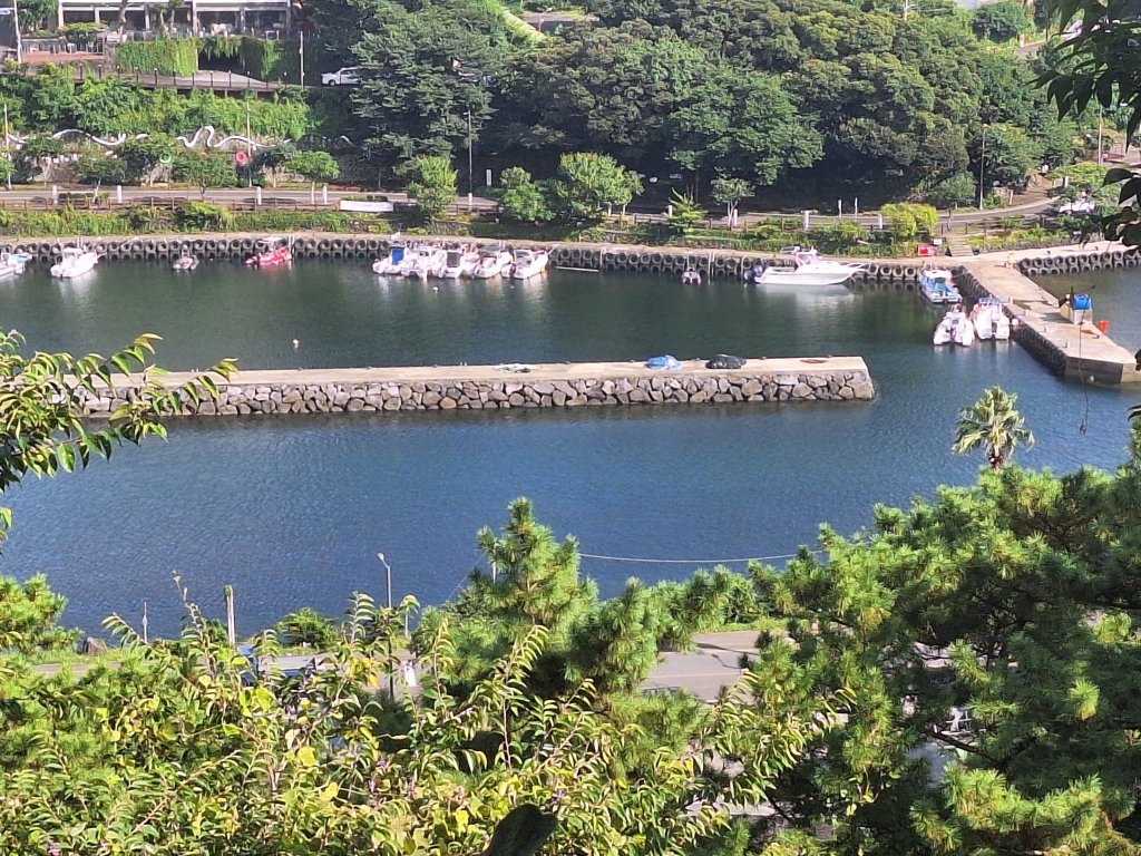 Drugi dzień poświęciłam na poszukiwanie dojścia do morza, które w końcu znalazłam, ale mowy nie było o zanurzeniu choćby stopy w wodzie morskiej. Ogromne, duże i małe kamienie broniły skutecznie dostępu do najmniejszego skrawka wody. Teren nadmorski otoczony parkiem z piękną roślinnością . Z uwagi na wyłącznie koreańskie napisy, znalezienie czegokolwiek w Korei nie jest rzeczą prostą, dlatego trochę mi zeszło, zanim dotarłam do brzegu morza.
