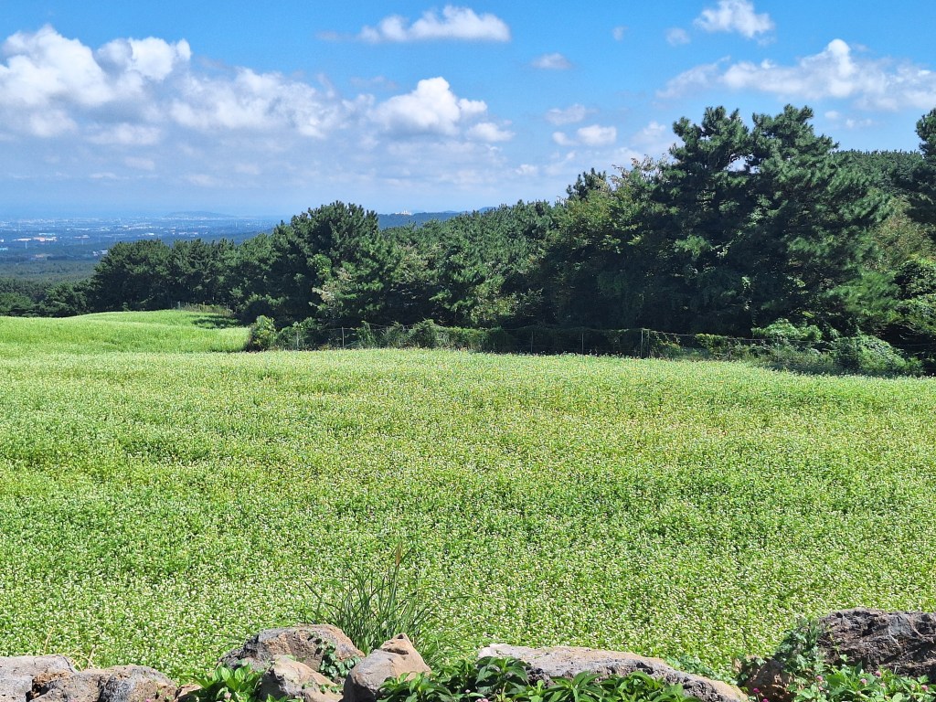 Z Hallasam Park pojechaliśmy zobaczyć ogromną plantację gryki. Uprawy ciągnące się po horyzont. Tam też trzeba było choć trochę pochodzić.