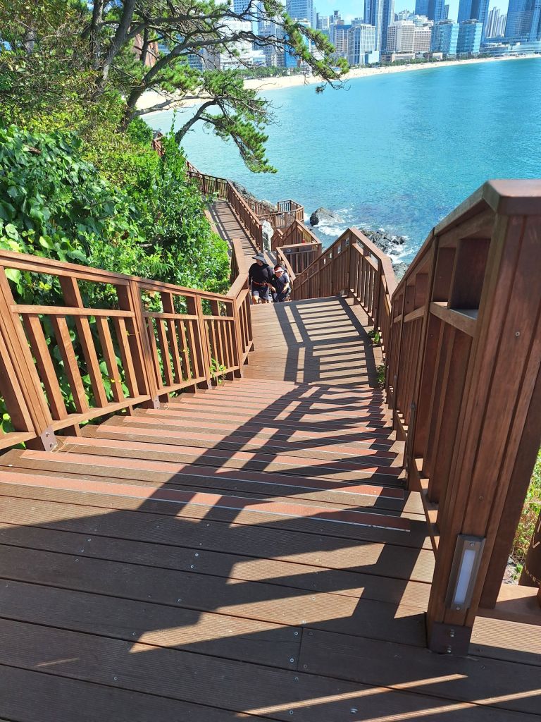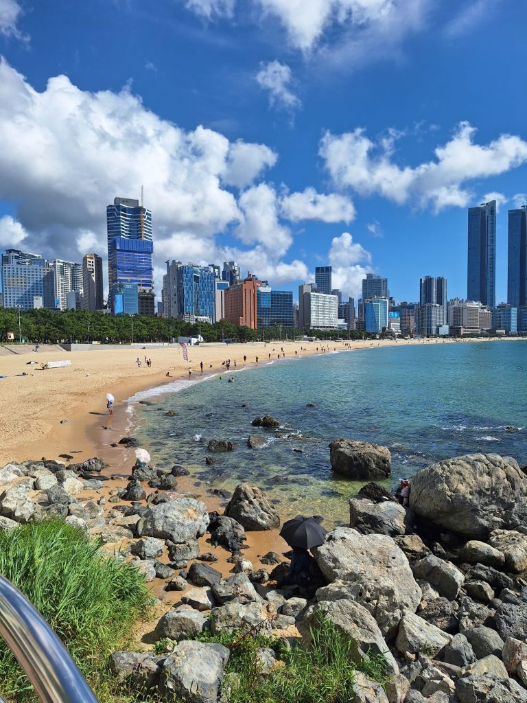 Drugiego dnia pobytu wyruszyłam zobaczyć dwie najsłynniejsze plaże w Buzanie, o których niektórzy mówią, że są także najładniejsze w całej Korei Południowej – jedna z nich to plaża Haeundae Beach, a druga to plaża Songjeong. W obydwu przypadkach towarzyszyły im bardzo ładne parki, w których podczas spacerów nie zabrakło oczywiście zwyczajowych tu wzniesień i schodów. Ale widoki były faktycznie ładne.