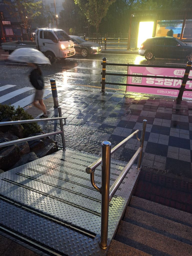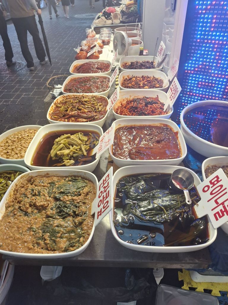 Następnego dnia niestety pogoda zaczęła się psuć. Pojawiły się na telefonie alerty o zbliżającym się deszczu i burzach. Na wszelki wypadek wybrałam się bliżej, żeby można było potem jakoś dotrzeć do hotelu, ale ponieważ jestem uparta i postanowiłam przede wszystkim chodzić, to i tak wróciłam przemoczona do suchej nitki. Na celowniku była wieża Busan Tower i rynek zarówno spożywczy jak i z tzw. mydłem i powidłem 🙂 I dobrze, bo potem przesiedziałam cały dzień w hotelu. Lało niemiłosiernie w całej Korei i jak się później okazało w niektórych miejscowościach były spore podtopienia.