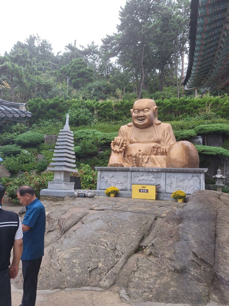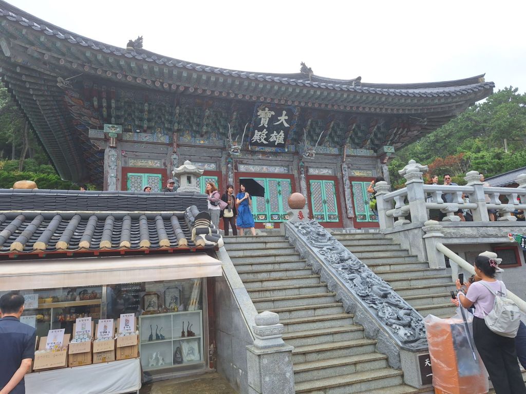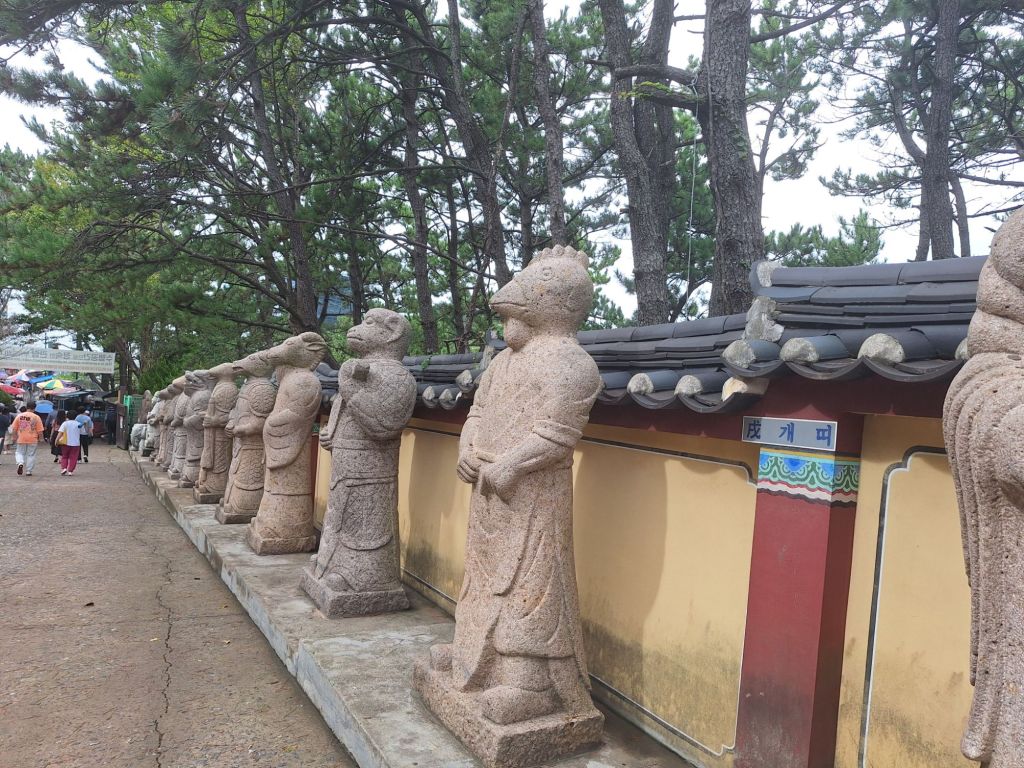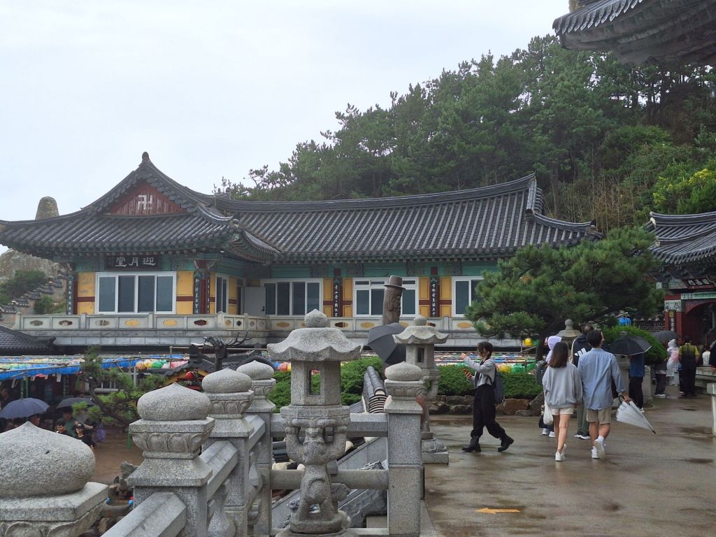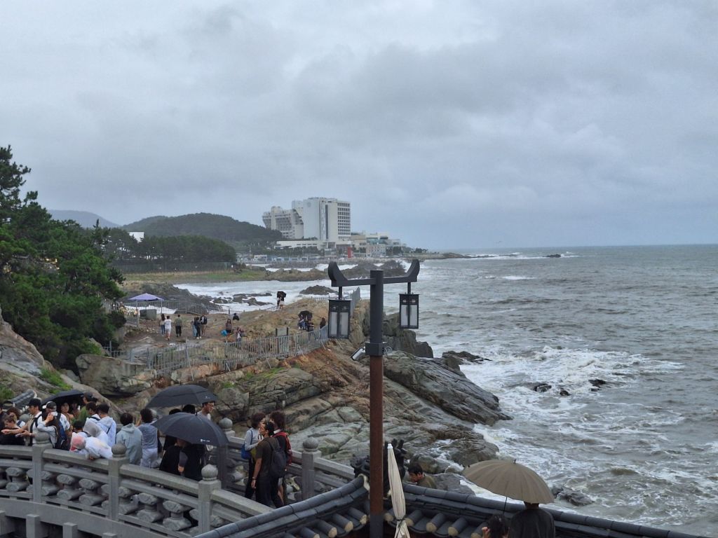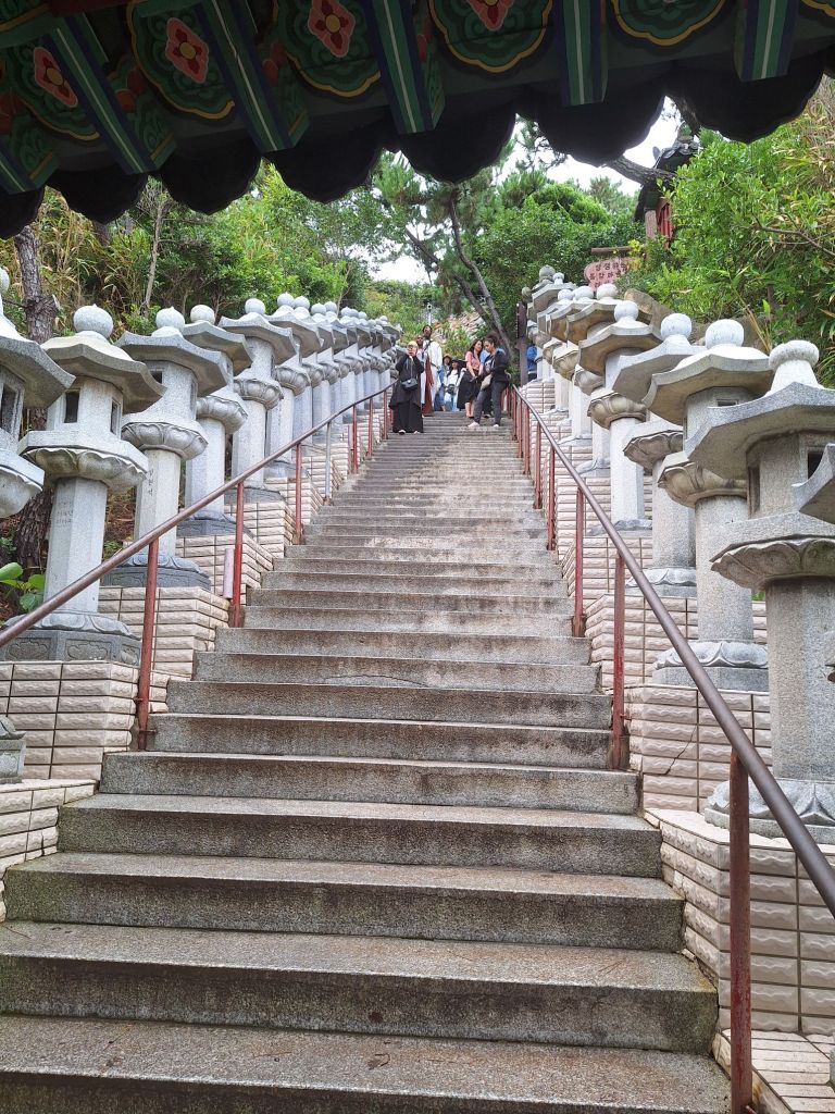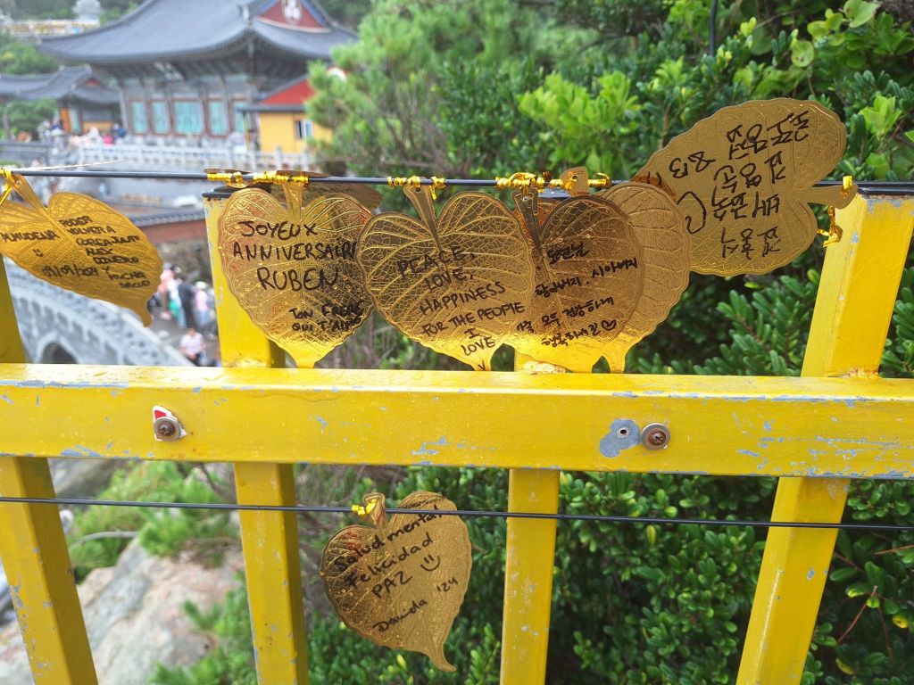 Deszczowa pogoda zakończyła się można powiedzieć w nocy i znowu można było ruszyć się z miejsca, chociaż trochę mżawki w pierwszej połowie dnia się pojawiło. Autobusem spod hotelu wyjechałam do znanej i sławnej tutaj świątyni buddyjskiej Haedong Yonggungsa Temple. Podróż trwała 1,5 godziny, potem oczywiście jakieś podejście i w końcu dotarłam. Sama świątynia twierdzi, że została zbudowana w 1376 roku, aczkolwiek podobno nie jest to do końca prawdą. W każdym bądź razie, jest to duży kompleks i jako jeden z niewielu w Korei wybudowany został nad morzem. Oczywiście nie obyło się znowu bez wzniesień i schodów. Wygląda na to, że aby zobaczyć coś ciekawego w Korei to trzeba się poważnie pomęczyć. No, ale było warto. Widoki wspaniałe. I ciekawostka – w Seulu był płot z tysiącami zawieszonych kłódek z życzeniami, tutaj jedna z dróg obwieszona była złotymi serduszkami.