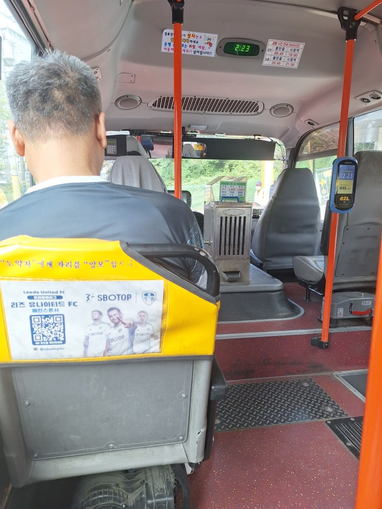 Ale pomimo niektórych ograniczeń Korea ma wiele wspaniałych rozwiązań, które mogą ułatwić życie cudzoziemcom, ale przede wszystkim ułatwiają życie mieszkańcom. Jest to rewelacyjny system komunikacji miejskiej, który pozwala na dotarcie praktycznie do każdego miejsca w miastach i w ich okolicach. Autobusy z napisem zero emisji podjeżdżają jeden za drugim. Wszystkie przystanki autobusowe z elektronicznym systemem informowania o przyjazdach konkretnych numerów. Tam gdzie nie może dojechać duży autobus, pozostałą część drogi jedzie się zielonym, małym 🙂