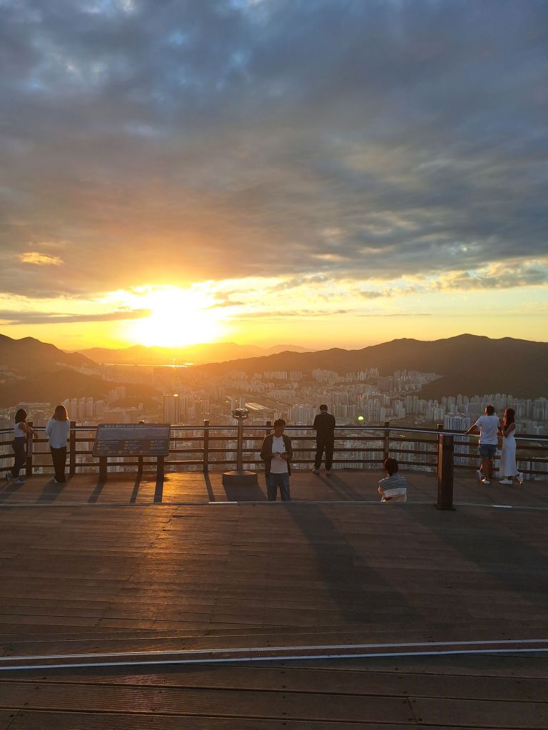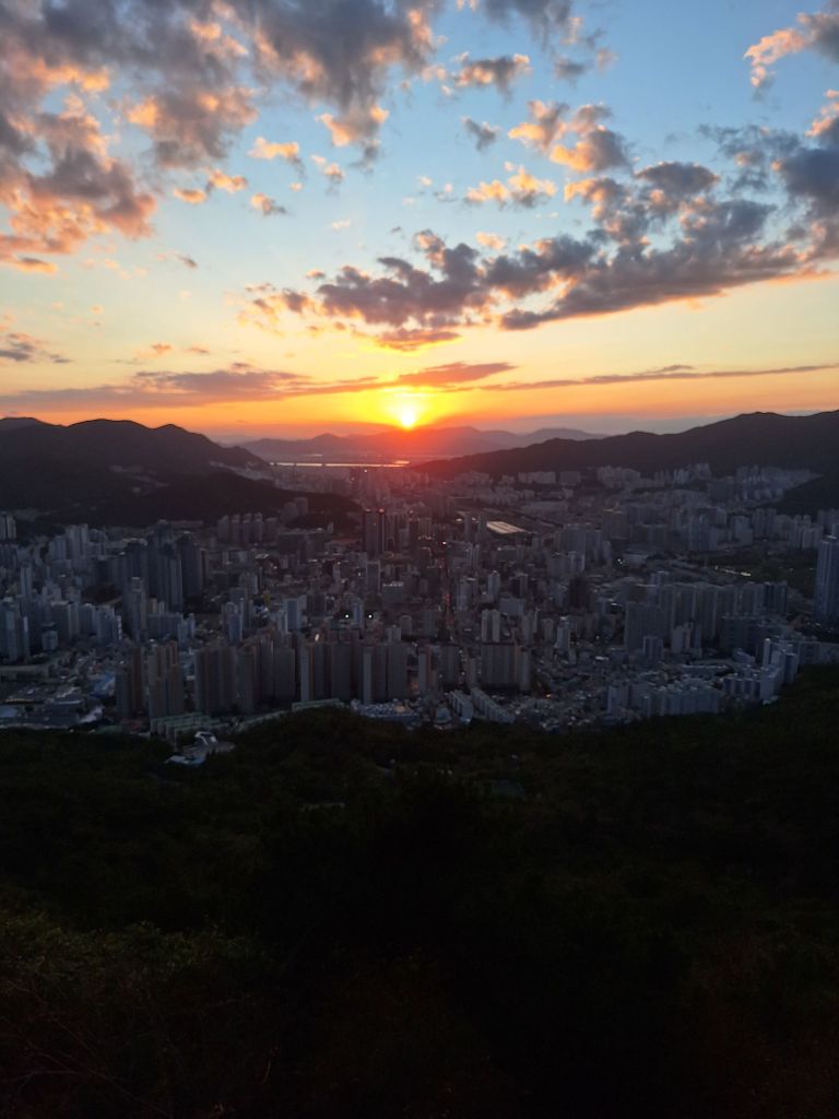 Dzisiaj praktycznie ostatni dzień w Buzanie. Może jeszcze jakiś krótki spacer i ostatni rzut oka na to miasto, a potem pakowanie bagażu. Wczoraj wspaniałe pożegnanie – dzień spędzony na górze Hwangnyeongsan Mountain, z której rozciągał się przewspaniały widok na cały Busan. Nie powiem, trochę się zmęczyłam, zanim dotarłam na ten szczyt, ale nawet przez moment tego nie żałuję. Naprawdę było warto. Spędziłam tam na górze prawie cztery godziny, czekając na wspaniały zachód słońca nad górami otaczającymi Busan. Dopiero stamtąd można było zobaczyć, że miasto jest położone w kotlinie i że nic dziwnego, że wszędzie jest w nim pod górę 🙂 Nie chciało się z tego miejsca odchodzić. Dużo pozytywnych emocji i ładowania akumulatora.