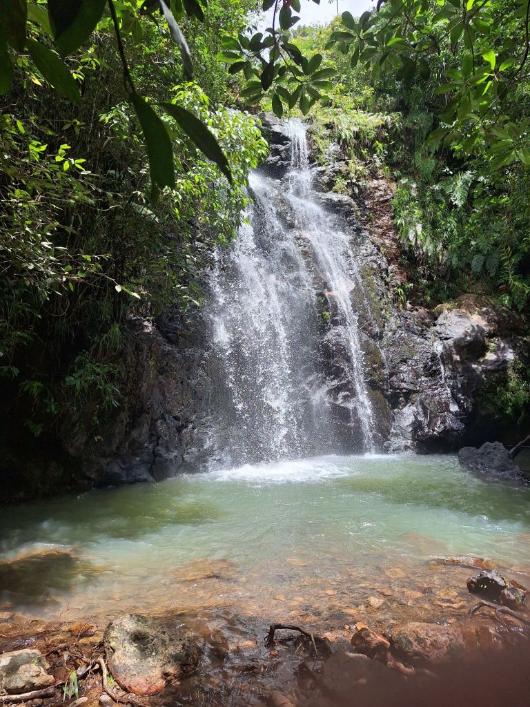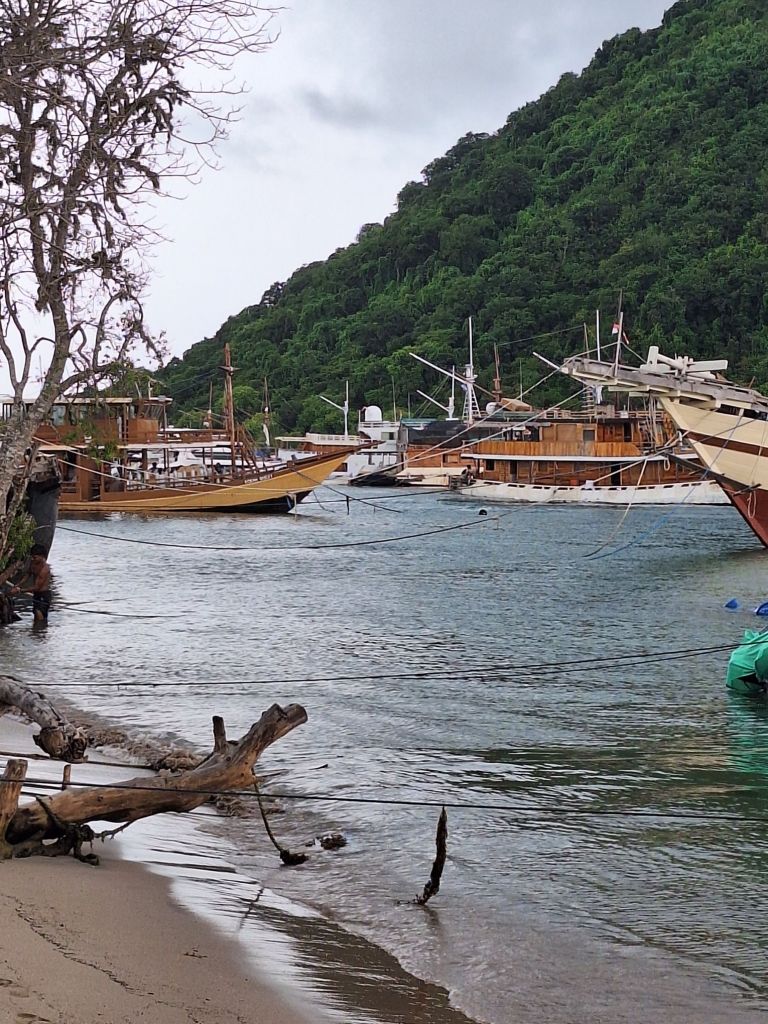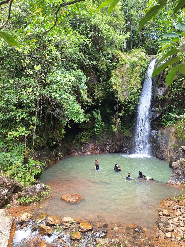 Flores zaskoczyła mnie nie tylko porą deszczową, ale także niespodzianką w postaci zamkniętego Parku Narodowego Komodo. Niestety, z uwagi na pogodę i nieciekawe warunki na morzu, Park Narodowy Komodo został zamknięty przez władze portowe i tak naprawdę, nie było wiadomo, kiedy zostanie ponownie otwarty. Krążyły pogłoski, że może 4 lutego się coś zmieni i dlatego postanowiłam poczekać. Żeby nie tracić czasu ruszyliśmy w teren dookoła Labuan Bajo po pierwsze wrażenia. Na początek – trzy wodospady w jednym miejscu, do których prowadziły kręte, wąskie ścieżki raz w dół, raz w górę, ale naprawdę było warto trochę się pomęczyć. Na szczęście tego dnia, przynajmniej do połowy, pogoda nam dopisała i mogliśmy je zobaczyć w pełnym słońcu.