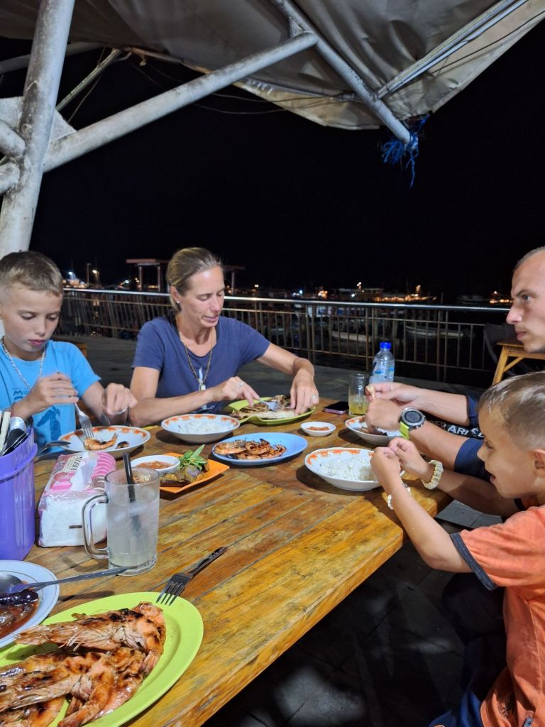 Jak się okazało mieliśmy z tą wycieczką ogromne szczęście. Ogromna burza w nocy z wielką ulewą i nagła zmiana pogody z soboty na niedzielę spowodowały, że park został, ze względów bezpieczeństwa ponownie od niedzieli zamknięty i tak naprawdę nie wiadomo, kiedy będzie znowu otwarty, bo niestety od niedzieli, z krótkimi przerwami leje. Pora deszczowa wróciła w pełni. Wczoraj udało mi powłóczyć trochę po mieście i wrócić na 5 minut przed ulewą, a wieczorem, w przerwie pomiędzy deszczami, poszliśmy z Czechami na pożegnalną kolację, gdyż dzisiaj już odlatywali w dalszą drogę. Wypuściliśmy się na nocny rynek rybny, gdzie nam na miejscu zgrillowano wybrane przez nas świeże owoce morza. I oczywiście pod koniec kolacji dopadła nas tam taka ulewa, że musieliśmy wrócić taksówką. Ulice Labuan Bajo zamieniły się w rwące rzeki i jakim cudem ta taksówka nas dowiozła do hotelu, to nie wiem. Dzisiaj pożegnałam wspaniałą rodzinę Czechów z nieprawdopodobnie wspaniałymi synami w wieku 5 i 10 lat. Ja, która za dziećmi nie przepadam, zakochałam się w obydwu 🙂 I tak powoli zakończyła się można powiedzieć moja wyprawa do Indonezji. To co zobaczyłam i przeżyłam już zawsze będzie moje i nikt mi tego nie odbierze. Jeszcze dwa dni tutaj i w piątek, 27-go lecę do Tajlandii. Wszystko co dobre, niestety musi się kiedyś skończyć.